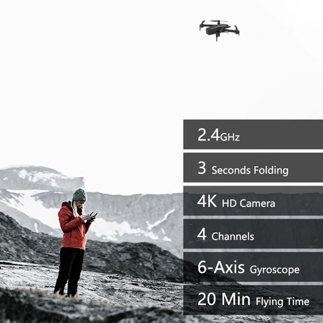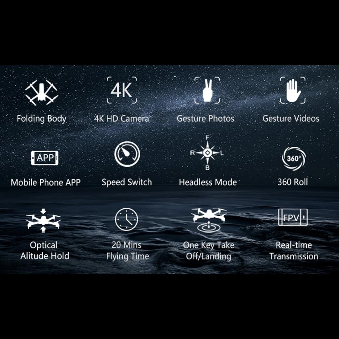 GW106 4K HD Dual Camera RC Quadcopter Gesture Photo Video Optical Flow Altitude Hold Foldable Drone