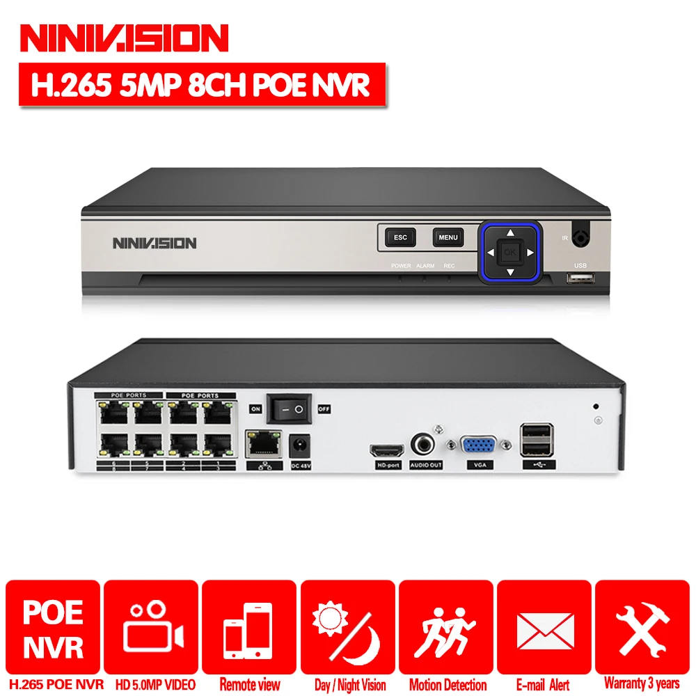 REVIEW TOP SELLER H.265 4CH 8CH 5MP 48V POE NVR Recorder Audio Out Surveillance Security P2P Video Recorder For POE C
